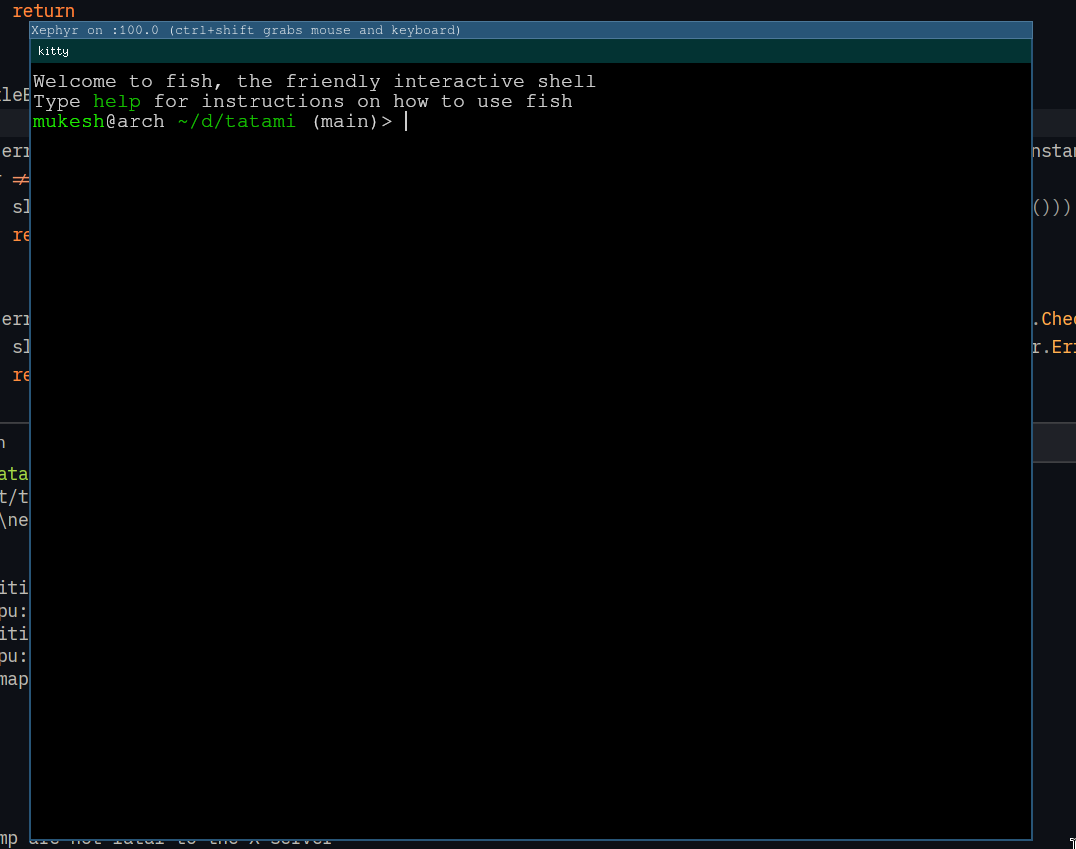 hiya! so recently i've started working on a x11 window manager called tatami, which is inspired from the japanese tatami mats which looks like tiles. i'm planning to make this as a tabbed tiling window manager, similarly to i3wm's tabbed view. i picked that flavor mainly because i use tabbed view a lot in my development setup, which consists of plain i3wm running on arch. here is what i got working until now, it's kinda basic but it took decent chunk of time to understand how x11's protocol and text rendering works. i'm not exactly sure how to embed images on spacehey, so please open the following links